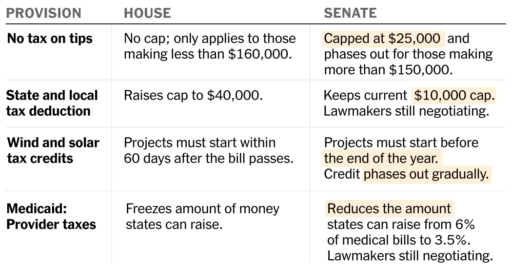 Mr. Trump also campaigned on rolling back tax credits for clean energy contained in the Inflation Reduction Act of 2022. Both bills do this, but the Senate has proposed a more gradual phase-out for key tax credits than the House did.