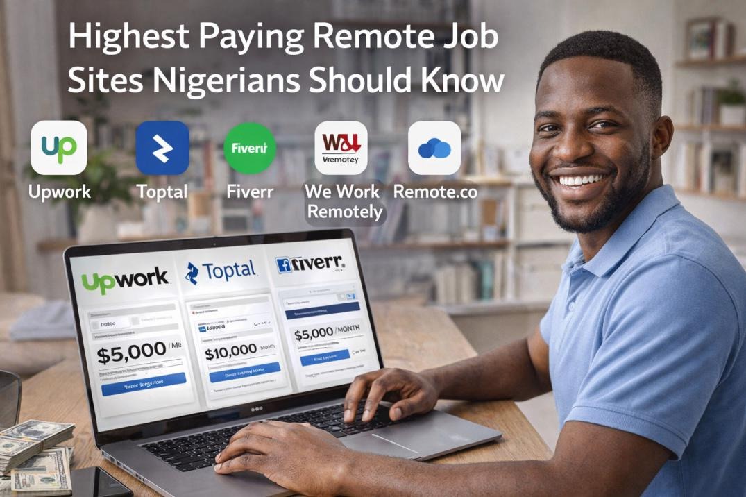 The highest paying remote job sites for Nigerians in 2026 include Upwork, Toptal, Fiverr, We Work Remotely, and Remote.co.