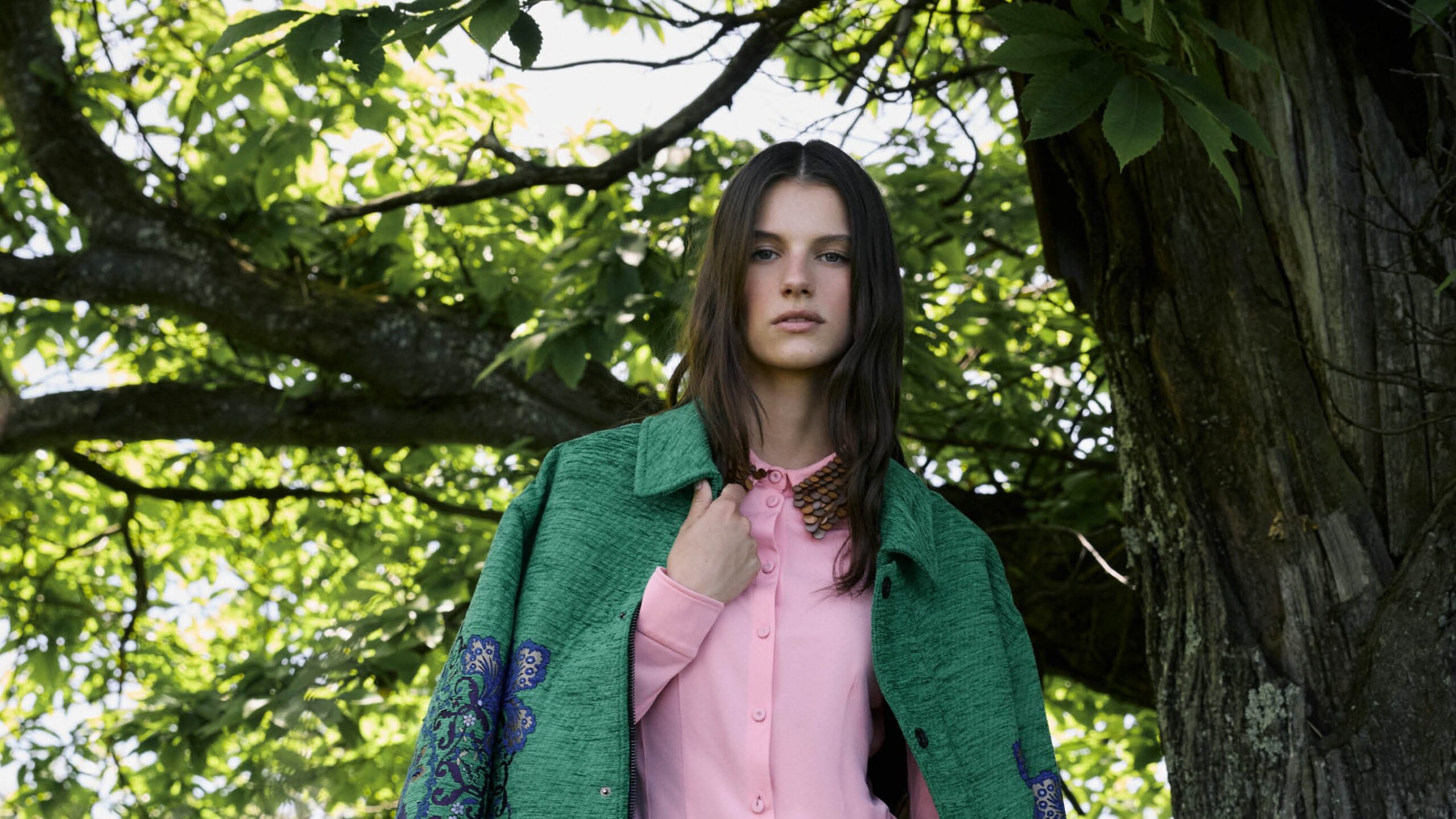 The prints themselves have also mellowed—motifs have grown in scale, giving everything a bit more breathing room. The visual jazz has softened, yet the trippy, esoteric symbolism is still vibing. Cue the “Fantastic Creatures” capsule, a prismatic loungewear fantasy made in collaboration with the surrealist Ecuadorian artist Beto Val featuring wild alchemies of flora and fauna: flamingos blooming into hollyhocks, leafy parrots with beak-shaped foliage, seashells spiraling into insects-turned-flowers, and a helicopter-bird-root hybrid that defies both botany and logic. Part spirit quest, part slumber party, and full-on LDJ.