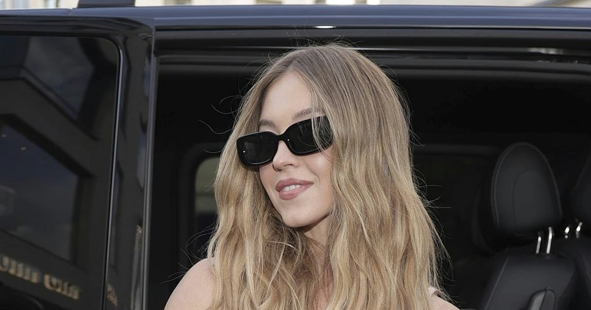 Sweeney joined a star-studded crowd for the re-launch of Miu Miu’s London store in a baby pink mini dress that walked the line between lingerie and party-wear. The boudoir-style piece, which looked to be intentionally crinkled, featured a belted waist and a plunging neckline. Sweeney left her dress straps to fall off her shoulders, and appeared to layer two bras (one in white, the other in black) underneath. It was a cheeky styling trick, one which Sweeney’s worn in the past, that continued with the rest of her look.