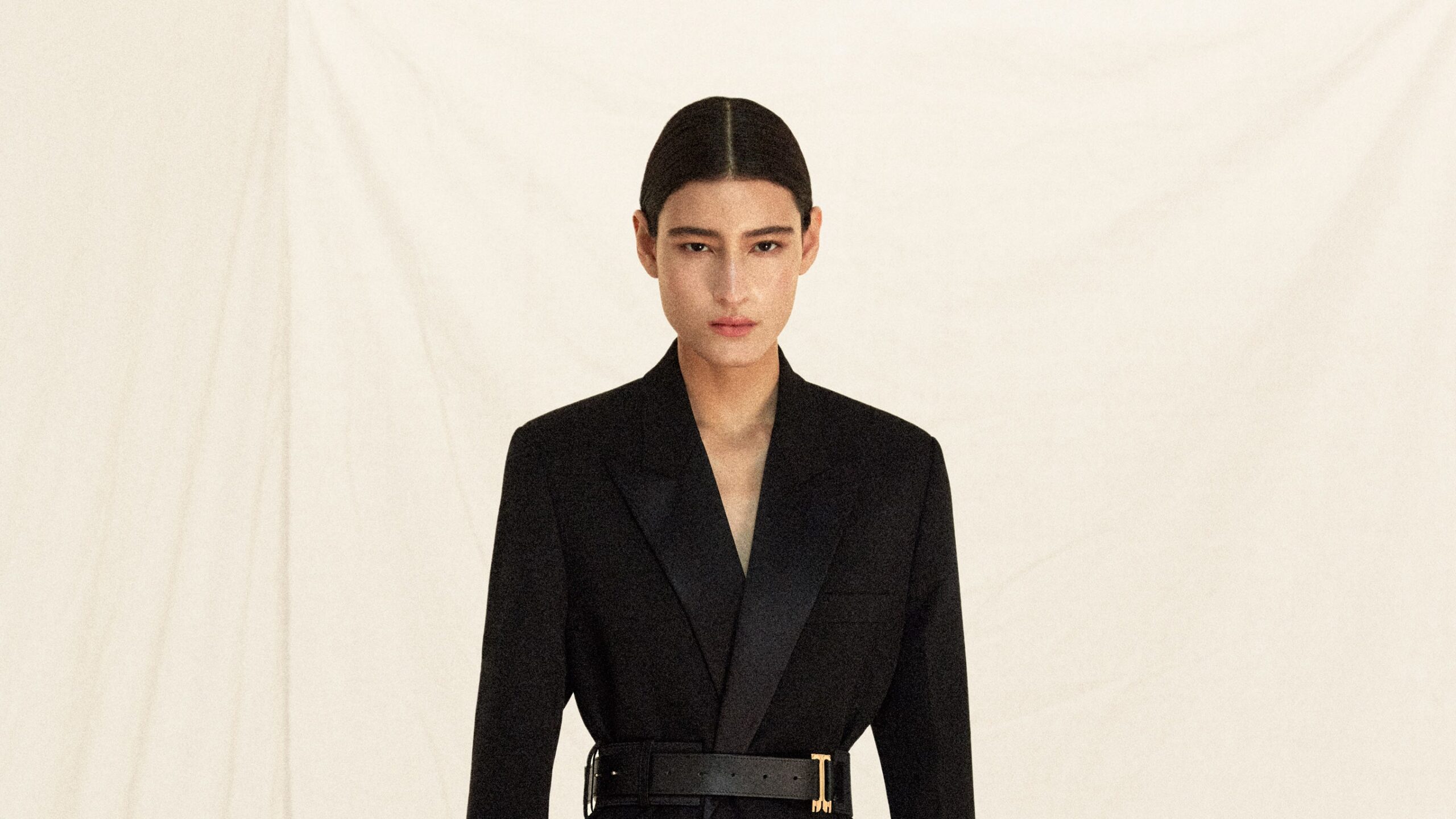 She noted that this season’s palette was pulled from a 1979 Francis Bacon painting, Study for a Portrait, that was briefly exhibited in her London flagship as part of a Sotheby’s curation. The graphic floral print on silk slip dresses and on the lining of a raincoat made in collaboration with Mackintosh, meanwhile, was inspired by a Gary Hume canvas. As for silhouettes, Beckham took her design cues from dance, an early passion of hers, and the very real, everyday demands of dressing for her high-powered career and life, which is often spent in front of cameras.