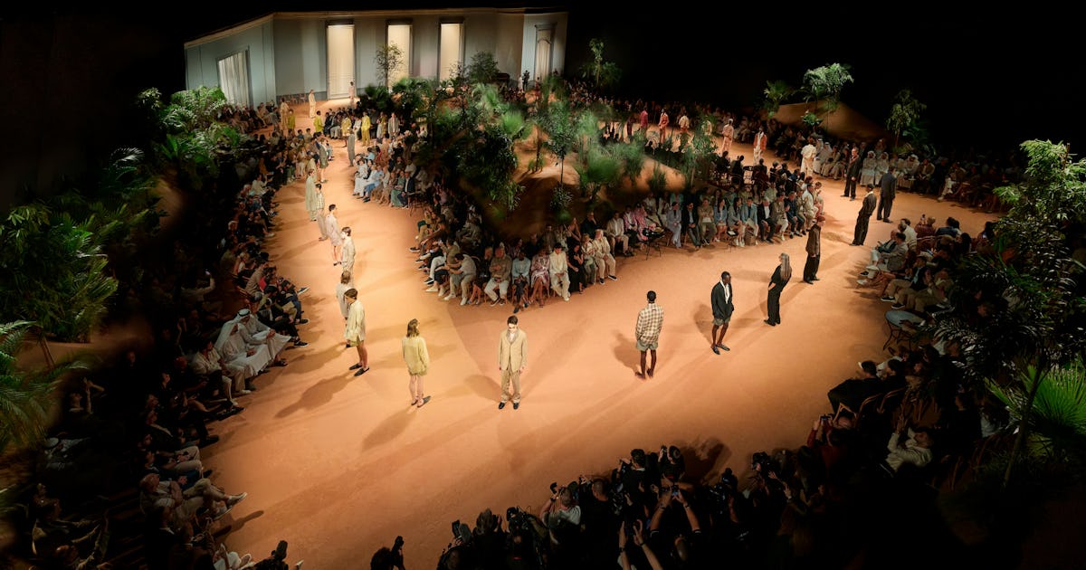 Getting a jump-start on the men’s shows in Milan, Zegna designer Alessandro Sartori decamped to Dubai to stage a beautifully layered collection. He and his team transformed the Dubai Opera into Villa Zegna, a recreation of the Zegna family’s historical home west of Milan; the company was founded there over a century ago, in what is now known as Oasi Zegna, a protected public park of about 100 square kilometers. Sartori traveled with about 80 members of his staff—tailors, designers, technicians—two weeks prior to the show to absorb local influences and ensure that the collection organically combined the label’s heritage with the modernism of Dubai, a city that Sartori believes is the new center of the world. “We thought it was important to feel the place and see the location rather than just bring the clothes from Milan,” he said. “Everything needed to be connected.”
